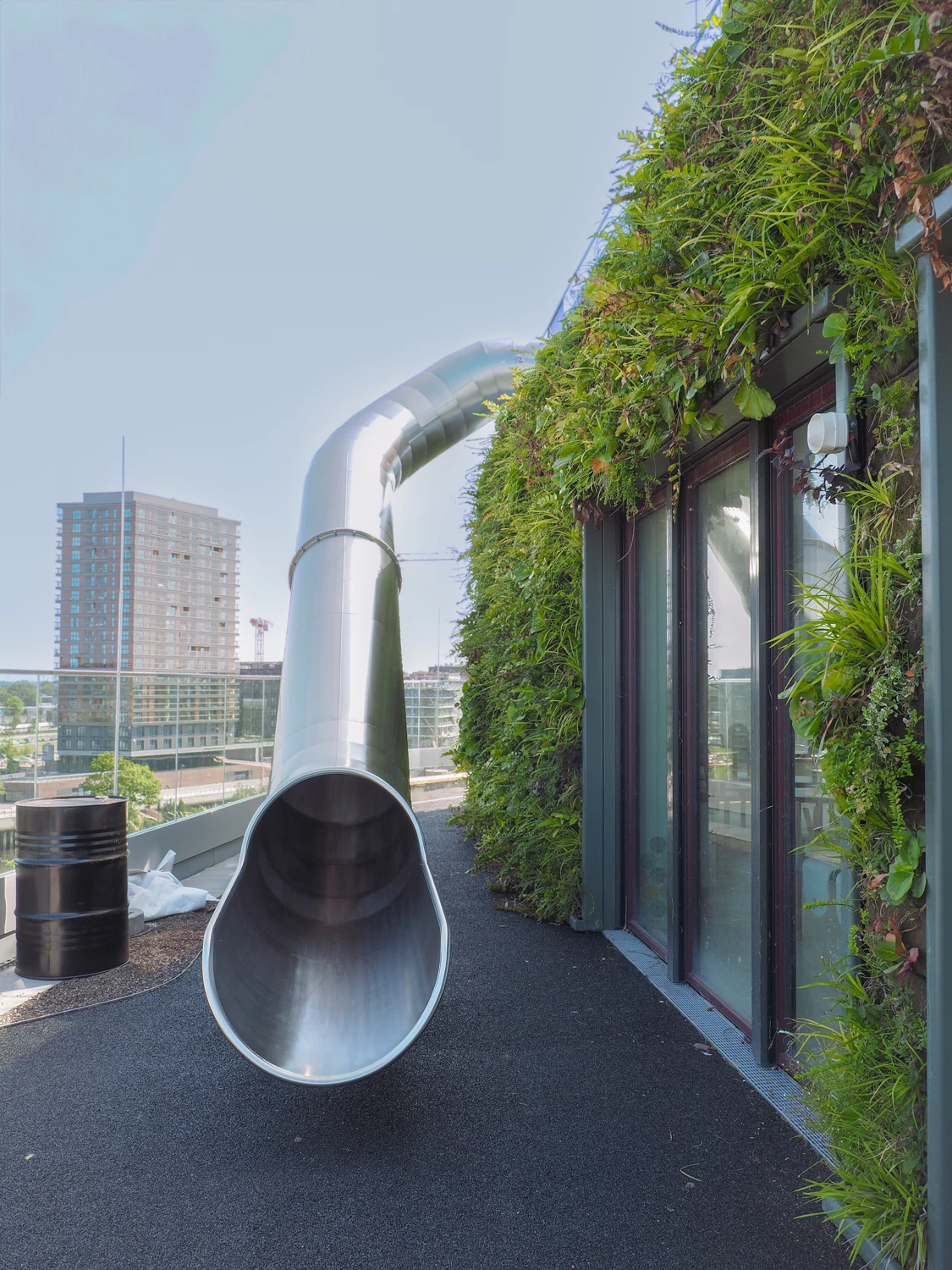 Ein dritter Outdoor- Spielplatz befindet sich im 1. OG auf der Dachfläche des Nachbargebäudes. Aufgrund der unterschiedlichen Nutzungen ist das geplante Bauvorhaben ein Sonderbau.