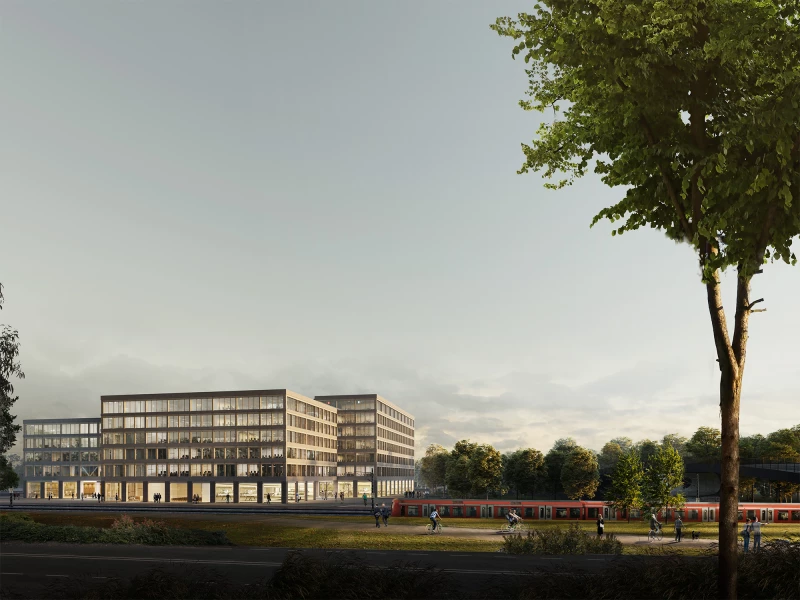 Im Hamburger Nordosten, am Rande eines sich neu entwickelnden Wohngebietes, wurde auf dem Gelände eines Gewerbekomplexes aus den 1970er Jahren ein moderner Bürobau mit Produktionsstätte entwickelt.