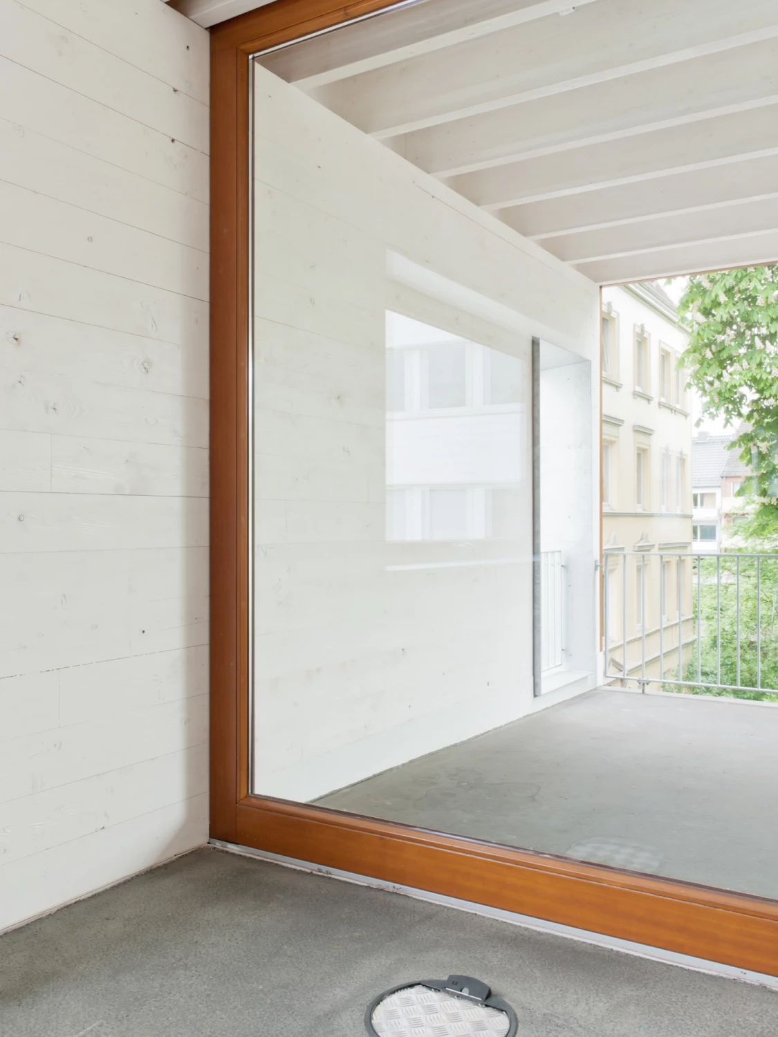 Das Geschäftshaus selbst wurde im Zuge der Planung um den Anbau mit einer Dachgeschosswohnung aufgestockt. Diese wurde ebenfalls in Holzbauweise konstruiert und gewährt mit einer großen Dachterrasse einen einzigartigen Blick über Eimsbüttel.