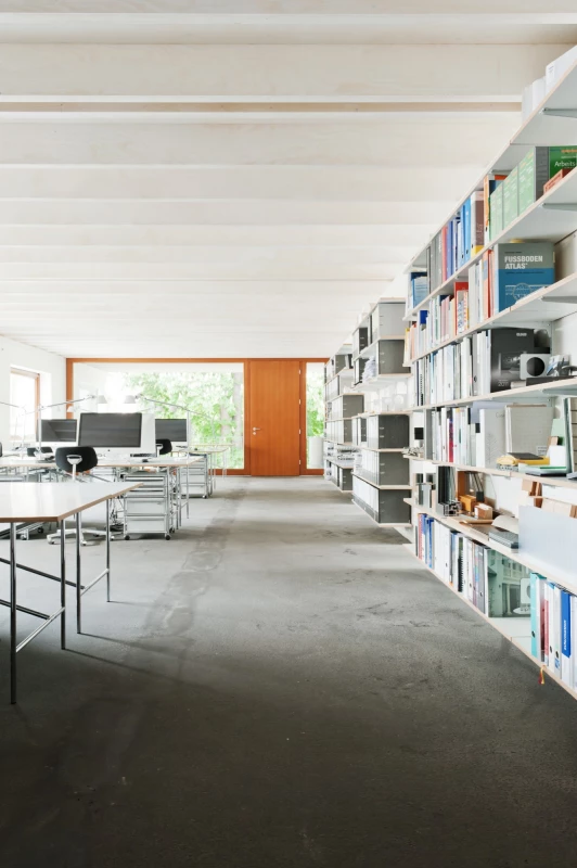 Eine Besonderheit bilden die geschwungenen begrünten Laubengänge, die von oben die Plaza organisch rahmen. Neben dem Gastronomiebetrieb werden Konferenzräume, die Hotellobby sowie Werkhallen im Erdgeschoss angesiedelt. In den darüber liegenden Geschossen führen Aufenthaltsräume die Baukörper zusammen und verbinden damit die Büroflächen miteinander. Die Grundrissgestaltung sieht eine größtmögliche Flexibilität vor, sodass sich sowohl Großraumbüros, als auch kleinteiligere Raumstrukturen individuell umsetzen lassen.